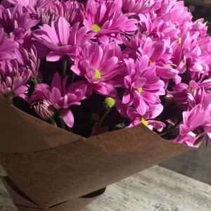 Букет из 15 белых кустовых хризантем Балтика в стильной упаковке