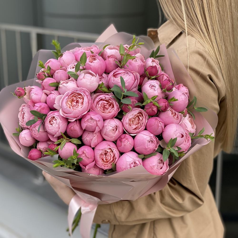 Букет из пионовидной кустовой розы и эвкалипта Кэмирон Стандарт в Осташкове