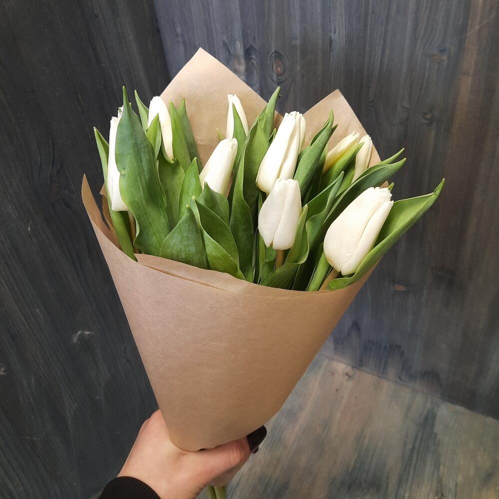 Букет из 11 белых тюльпанов в крафте в Осташкове